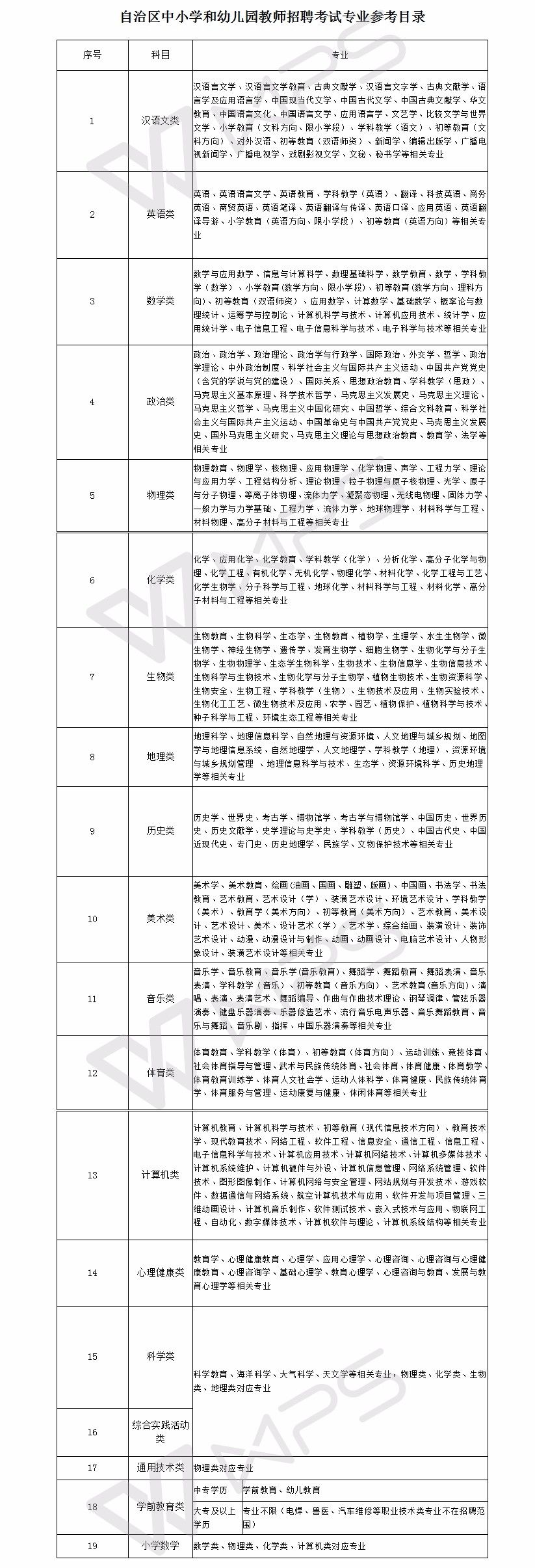 附件3:2017年自治区中小学和幼儿园教师招聘考试专业参考目录