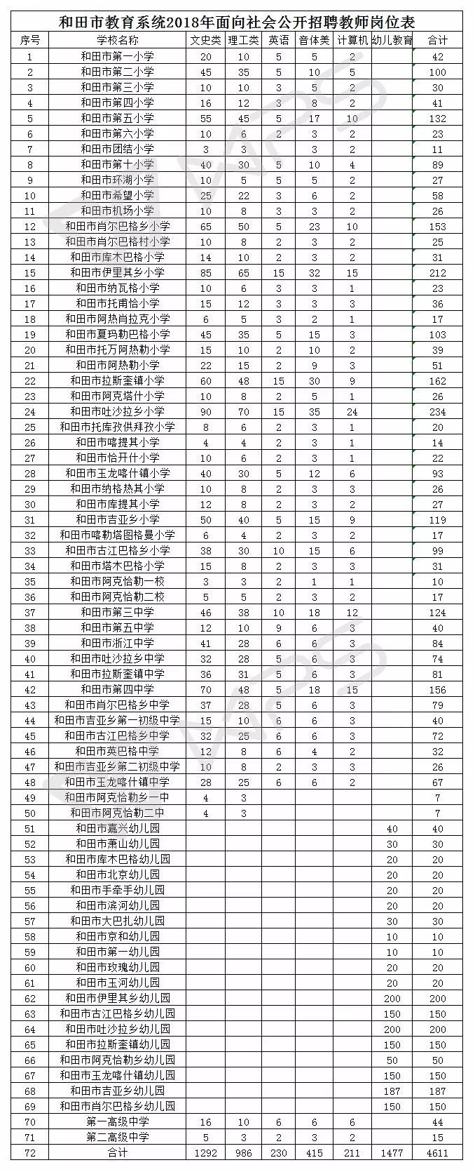 后附:和田市2018年面向社会公开招聘教师岗位表